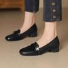 Fashion French Retro One Foot Shallow Mouth Single Shoe for Women Round Toe Mid Heeled Loafers For Work Small Leather Shoes For Women