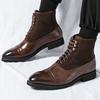 Fashion New Men's Pointed Lace Up Patchwork Monk Strap Ankle Boots British Designer Botas Trend Casual Luxury High-top Punk Rock Shoes