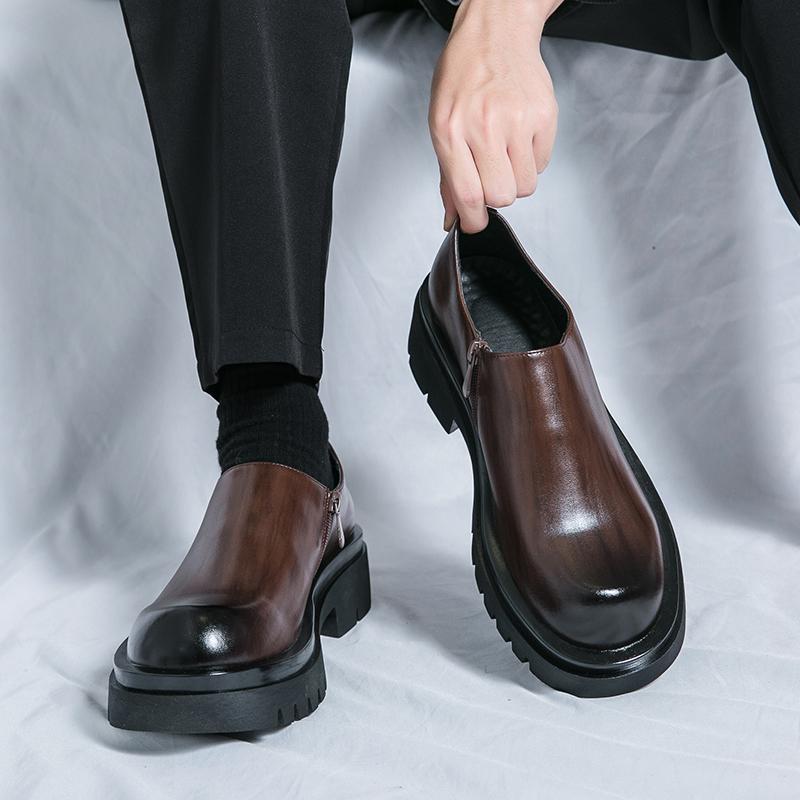 Fashion Fashion Side Zipper Loafers Handmade Mens Business Designer Leather Shoes Breathable Male Comfortable Men Casual Walking Shoes