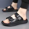 Fashion Double Buckle Designer Leather Slippers for Men Summer Solid Color Sports Beach Shoes Male Hallow Soft Sole Fashion Slippers