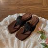 The Same Style As the Grape Mother, the Height Increases by 4cm~ Bohemian Style Hollowed-out Crocheted Toe Square Head Sandals for Women's Summer Wear
