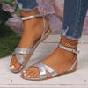 Foreign Trade Flat-soled Sandals Women's 2025 Summer Round Head Open-toe One-word Buckle Strap European and American Fashion Large-size Women's Shoes