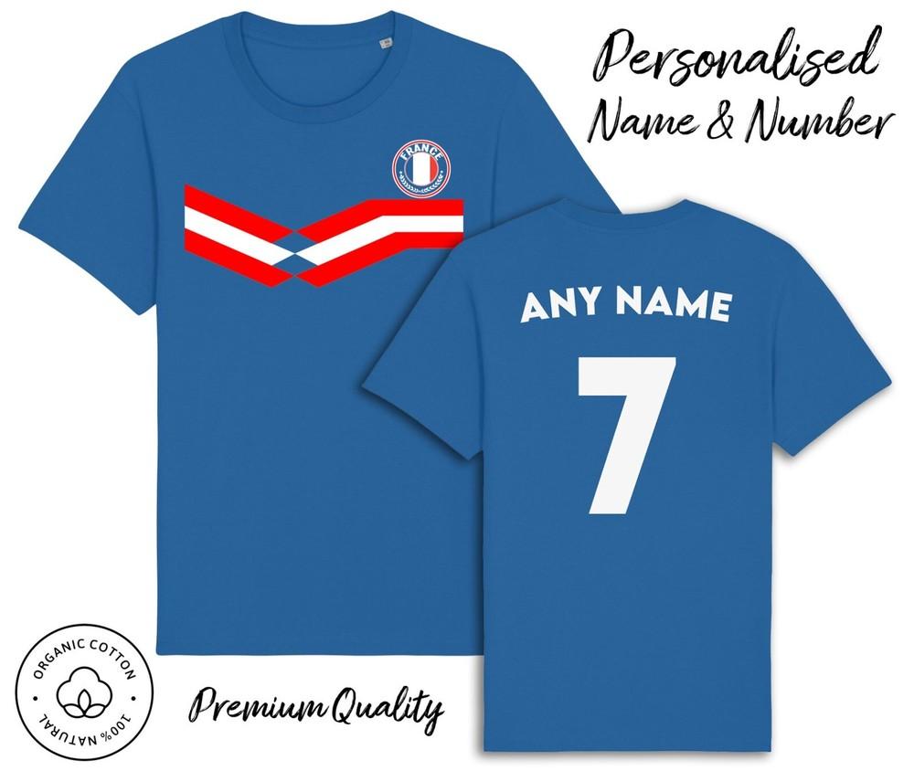 France Strip T-Shirt 2024 Personalised Name and No Adults Kids Baby,Football Euro