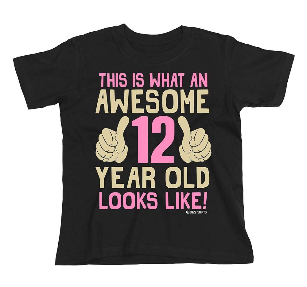 Girls 12th Birthday T-Shirt Kids Cotton Awesome 12 Year Old GIFT Child