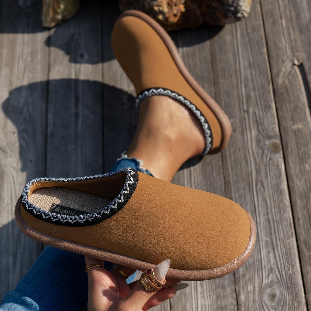 Foreign Trade Large Size Autumn and Winter New Lace Popular Flat Bottom Fashion Snow Boots Women's Shoes Half Drag Cotton Shoes Thickened Plush