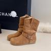 Pleated Pile Boots Women's 2025 Autumn New Belt Buckle Retro Brown Maillard Skinny Inner Heightening Short Boots Women