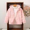 Children's Clothing New Autumn Winter Solid Color Heart Jacquard Hooded Plush Jacket for Girls