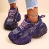 2025 Autumn New Foreign Trade Large Size European Goods Heavy Industry Washed Denim Rhinestone Platform Casual Sports Dad Shoes