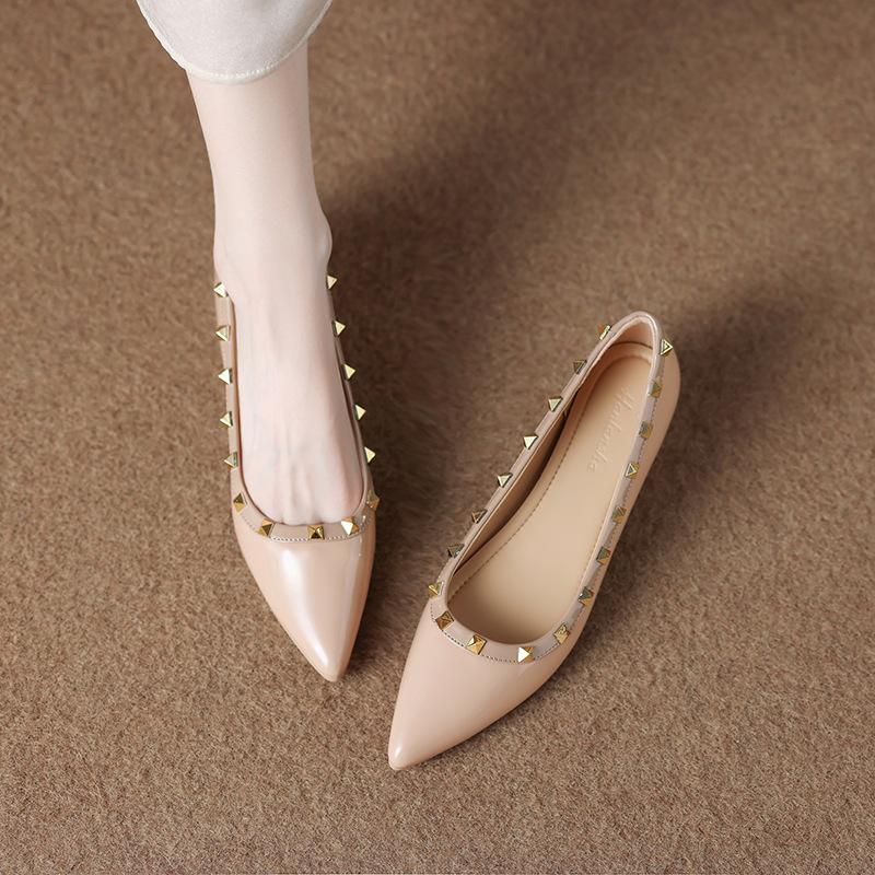 2025 Spring and Summer New Pointed Rivet Single Shoes Women's Small Inner Height Increase 5CM New Beautiful Shallow Mouth Evening Shoes