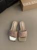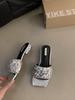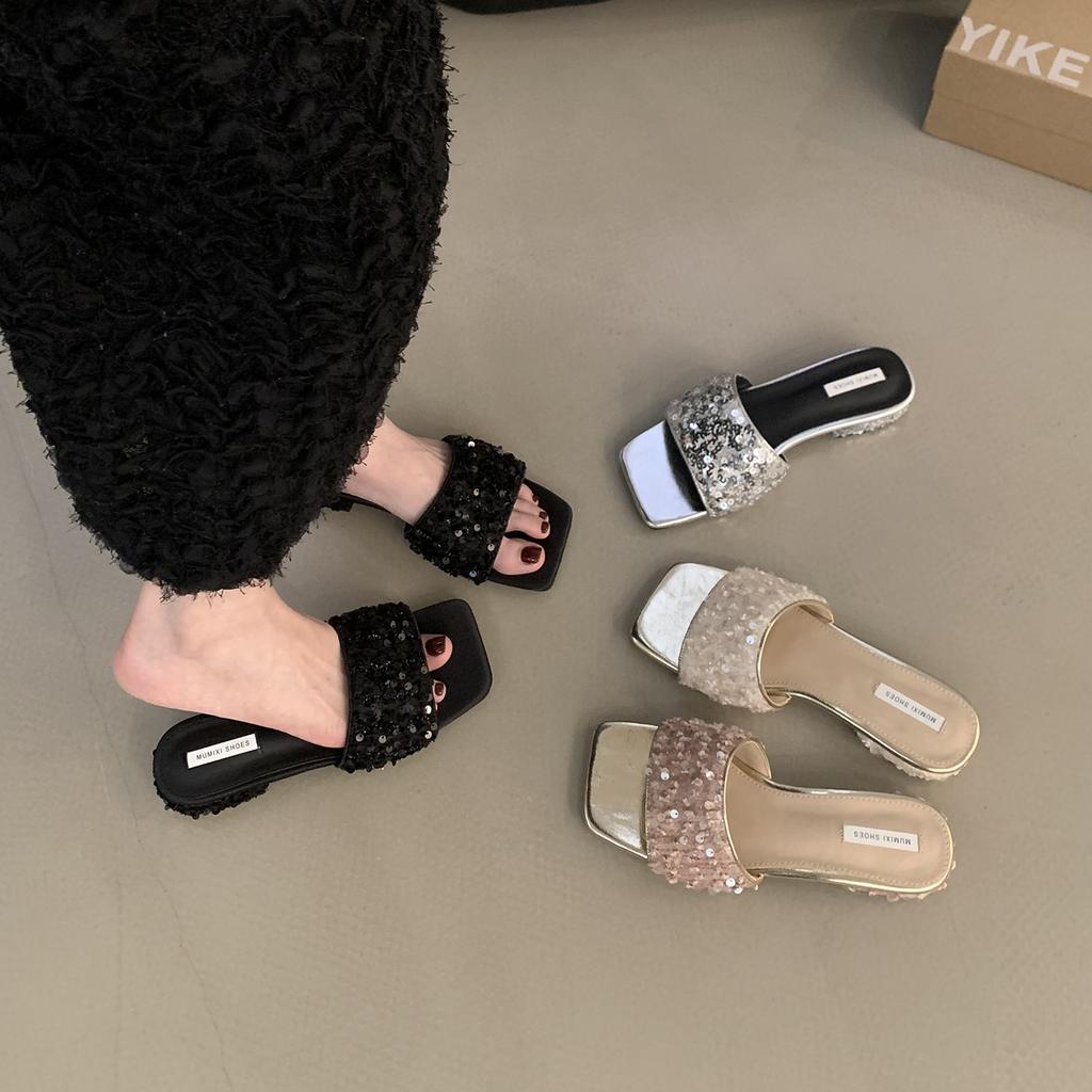 French Rhinestone Sequined Thick Heel Slippers Women's Summer Wear 2025 New Low Heel Design Silver Sandals