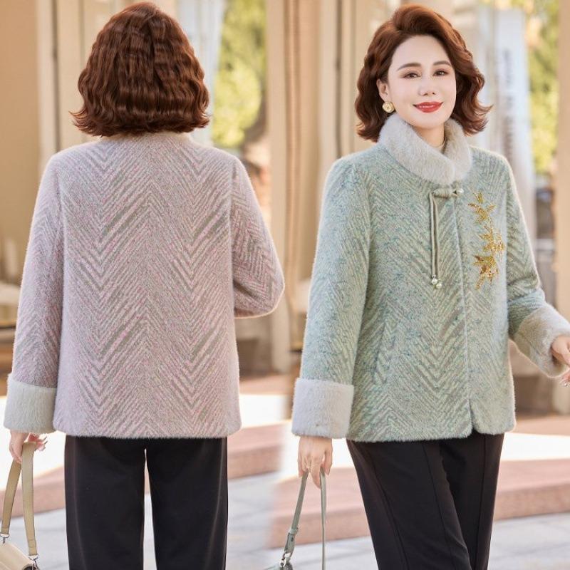New Mother Winter Chinese Mink Coat Noble Women's Clothing Medium and Old Velvet Thickened Coat Women