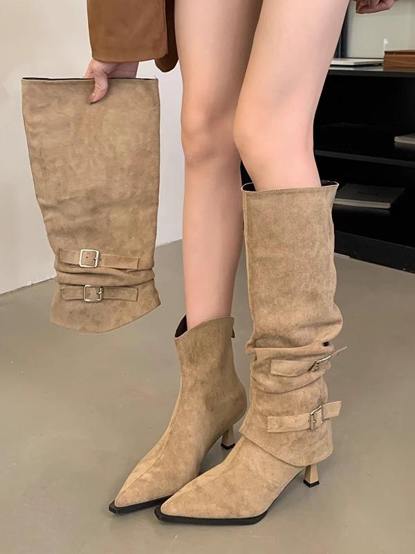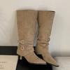 Suede Pointed Pleated Piled Boots Women's 2025 Autumn and Winter New Removable Two-wear Thin Heel Boots High Heel Short Boots