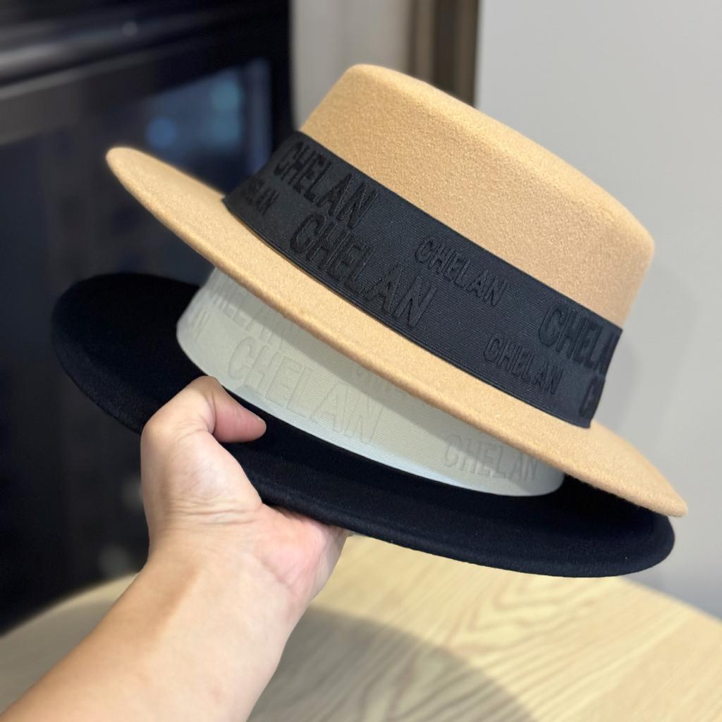 Wool Letter Hat for Women Autumn and Winter Ins Korean Style Versatile Flat Top British Style European and American Fashion Flat Brim