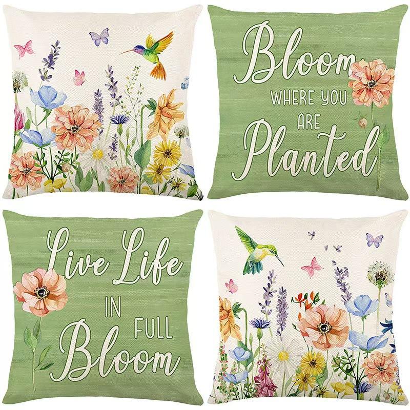 Spring Home Tulip Pattern Linen Print Indoor Sofa Living Room Season Decorative Throw Pillow Cover