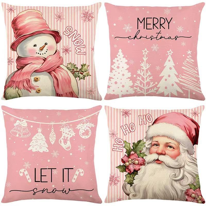 Christmas Pillow Case Pink Pillow Four-piece Set Sofa Cushion Seat Lumbar Support