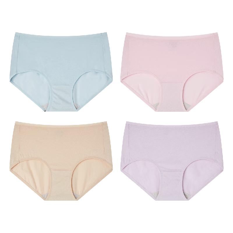 Yiershuang Women's 100% Combed Cotton Mid-Waist Antibacterial Briefs 4-Pack