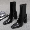 Fashion Autumn Square Toe Slim Women Ankle Boots Thick High Heels Ladies Shoes Fashion Square Toe Short Botas De Mujer