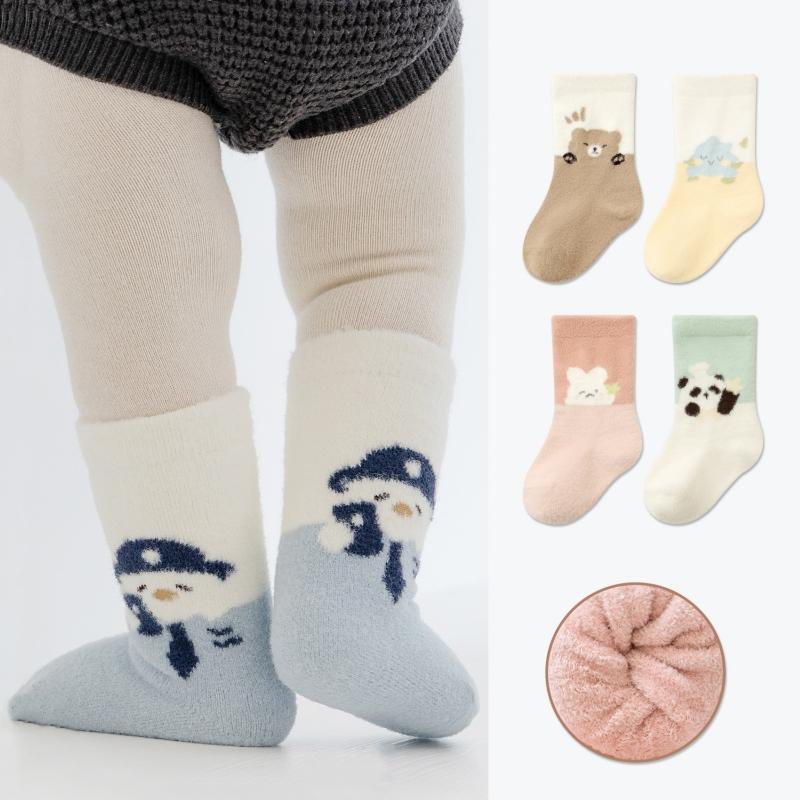 Cute Bear Baby Socks Winter Thicken Warm Baby Boys Girls Middle Tube Socks Toddler Kids Socks