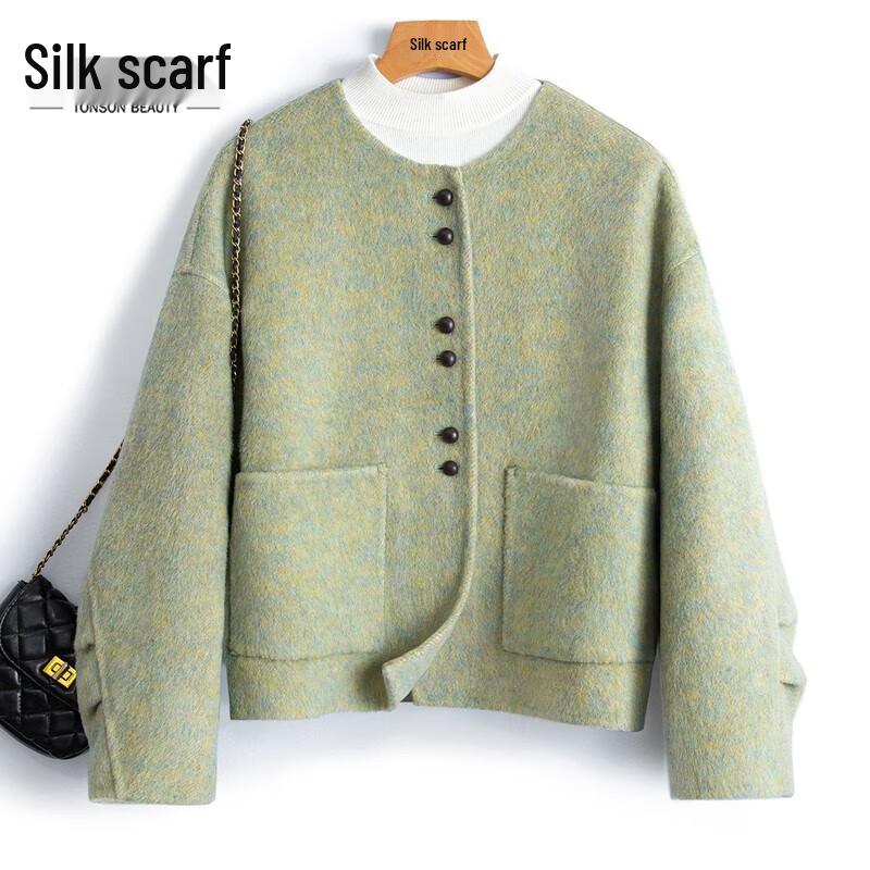 Women's Round Neck Single-Breasted Double-Faced Wool Coat
