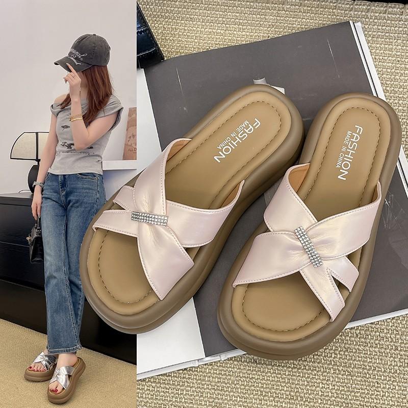 French Thick-bottomed Cool Slippers for Women's Summer Outer Wear 2025 New Cross-strapped Flat-bottomed High-end Skirt One-word Slippers