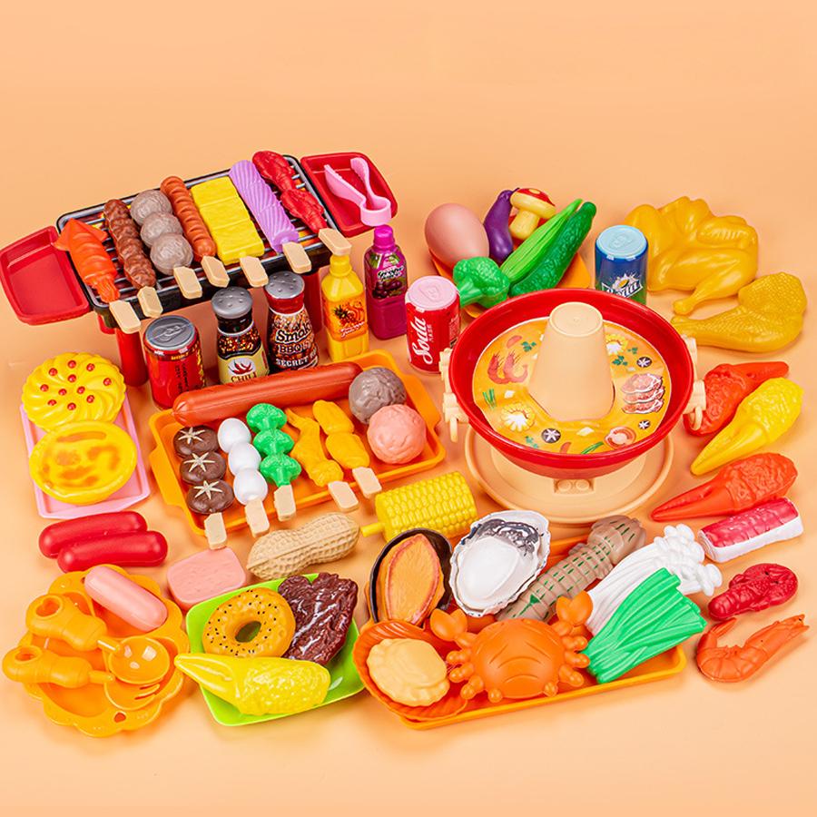 Large Play Food Set for Kids Kitchen | BBQ Grill Hot Pot Pretend Cooking Toys | Birthday Gift for Children