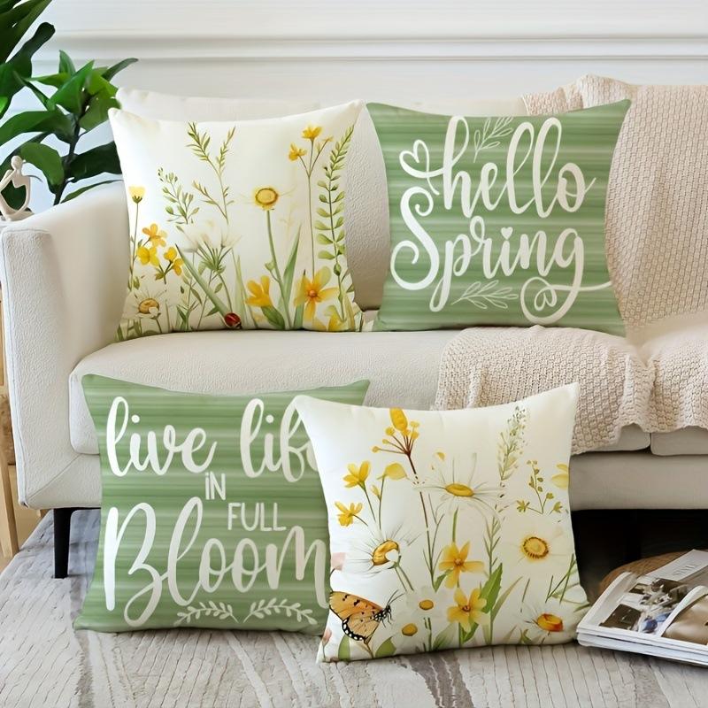 Spring Flower Simple Letter Pattern Linen Printed Indoor Sofa Car Decoration Cushion Cover