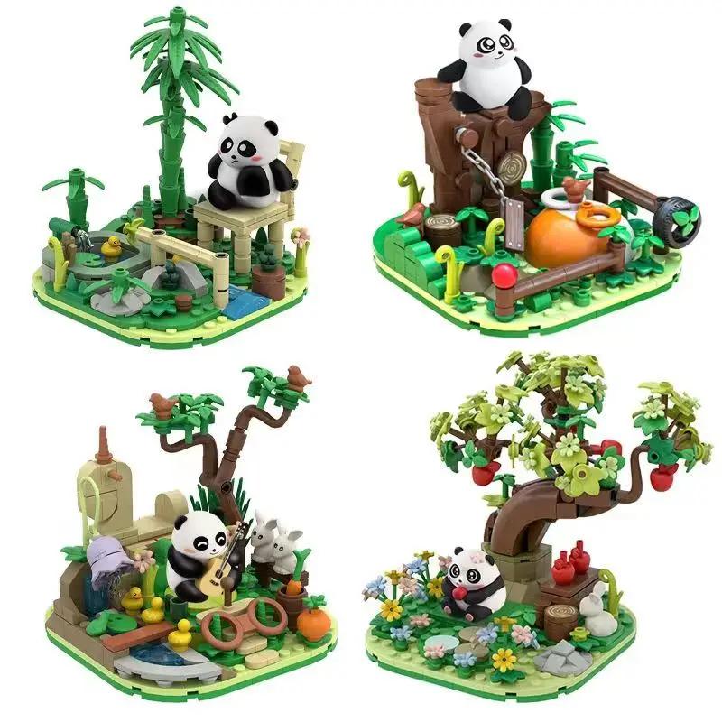 Cute Panda Building Blocks Zoo Landscape Assembly Model Bricks Creative Desktop Decoration Children's Christmas DIY Toys Gifts
