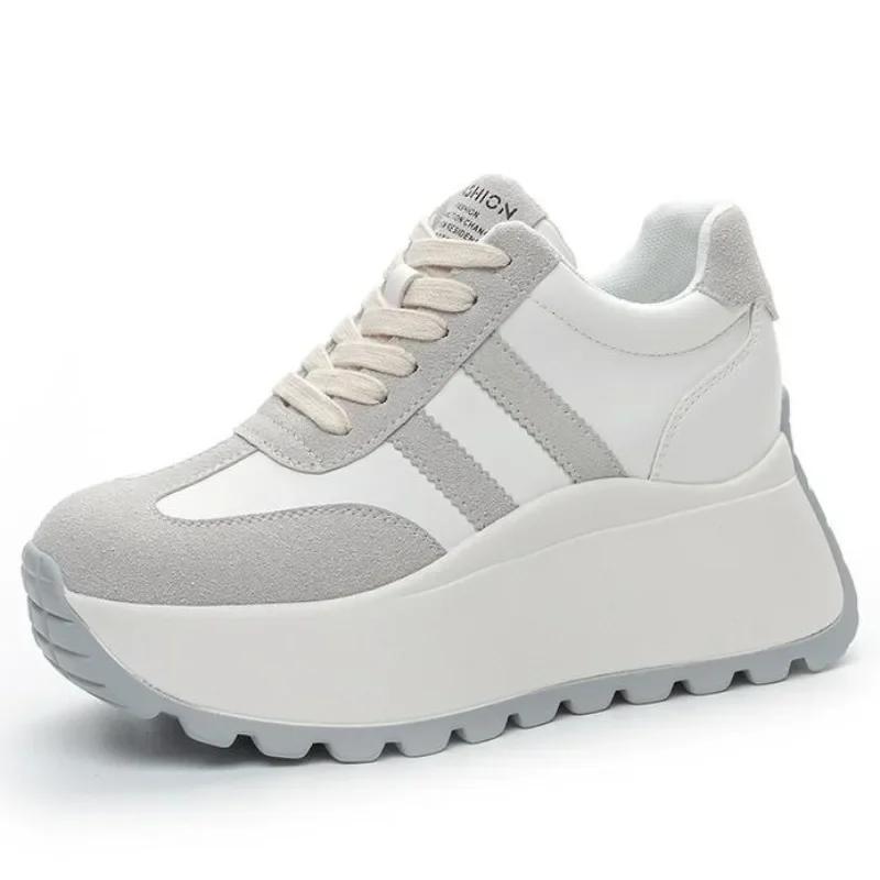 Top Quality 8cm Genuine Leather Platform Wedge Women Spring Autumn Chunky Sneakers Shoes Breathable Comfortable Vulcanize Boots