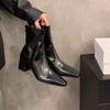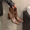 High Heel Square Head Brown Martin Boots Women's Shoes 2025 New Spring and Autumn Single Boots with Skirt French Small Bare Boots Short Boots