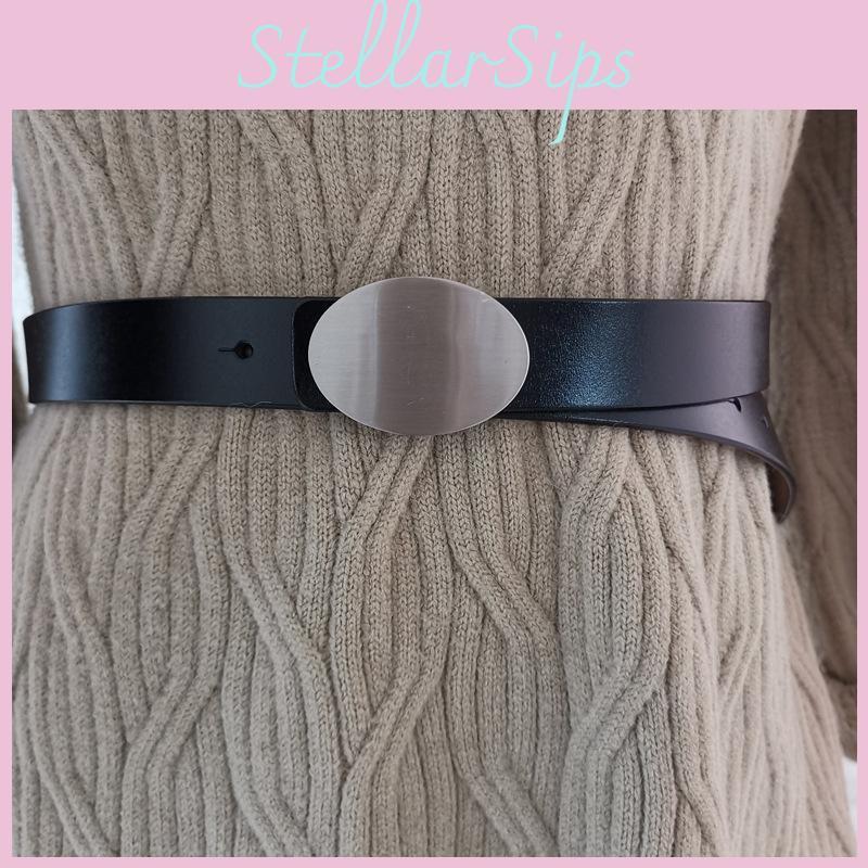 This women's leather belt features a durable two-layer cowhide construction with a sleek square alloy buckle, measuring approximately 2-4cm wide. It offers adjustable lengths of 95cm, 100cm, 105cm, and 110cm, suitable for casual or office wear. Ideal for summer outfits, it combines minimalist style with polished hardware. Wipe clean with a soft cloth to maintain its finish.