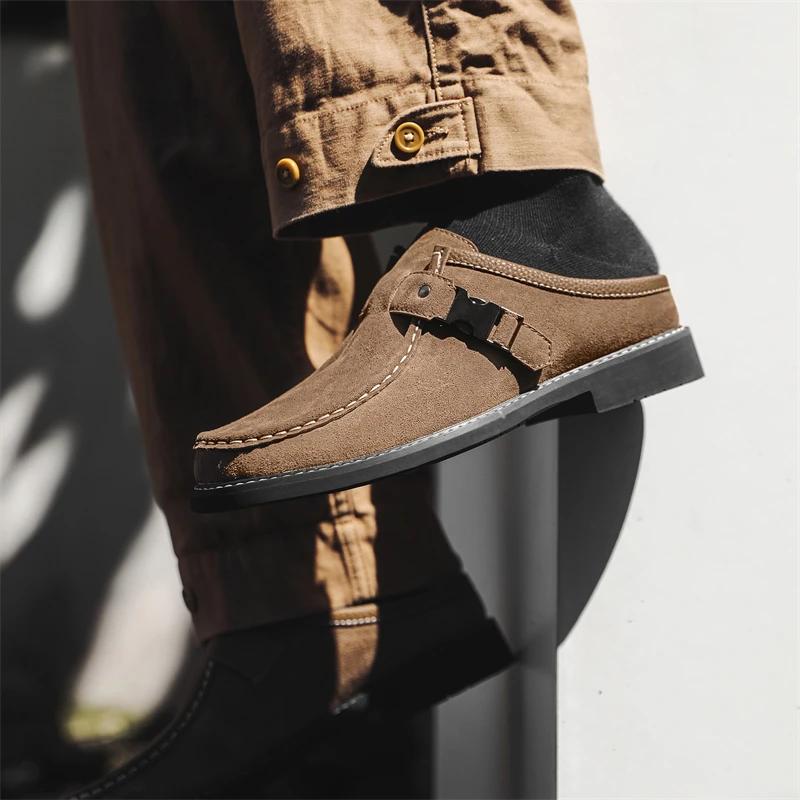 2025 Retro Style Shoes Men's New Leather Cow Suede Slippers Non-Slip Leather Comfy Lightweight Mens Casual Sandals