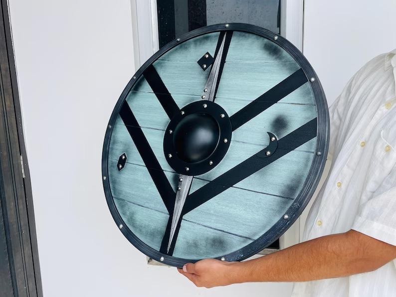 Viking Warrior Shield - Handcrafted Wooden Round Shield for Cosplay & Decor