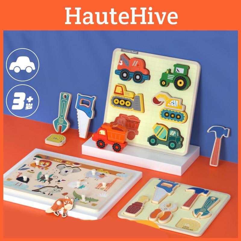 Wooden Vehicle Engineering Puzzle Blocks For Kids Learning Shape Recognition