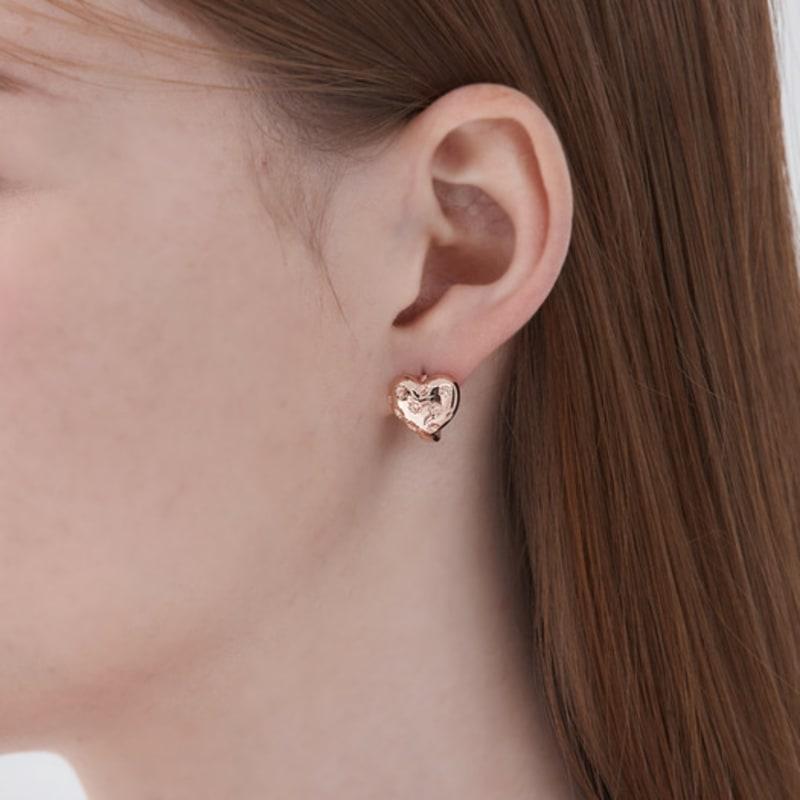 CRANNE 14K Ballroom Heart Carved Cubic One-Touch Earrings C24EGP212