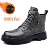 Casual Leather Men's Cowboy Boots Sneakers Platform Motorcycle Boots Winter Plush Snow Male Ankle Boots High Top Shoes