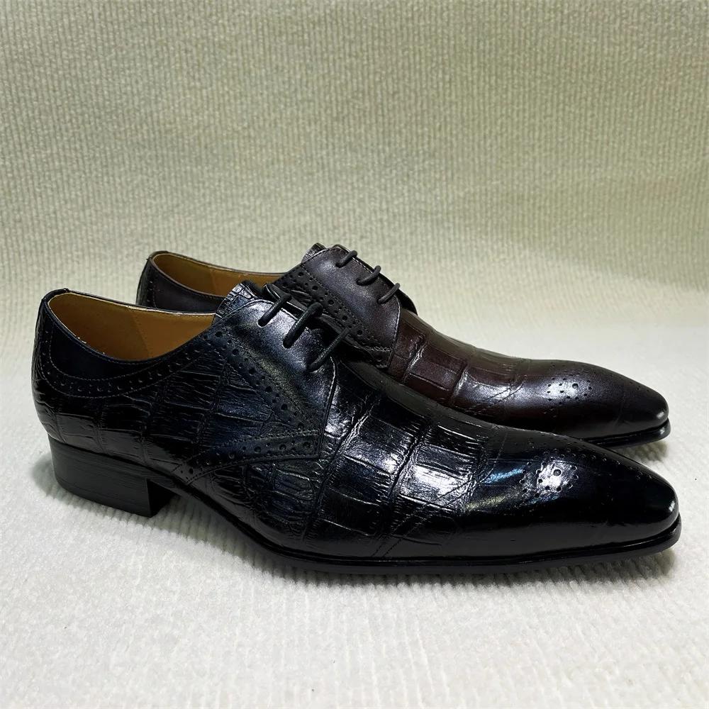 Men's Luxury Italian Leather Oxfords Shoes Brown/Black Lace-Up Wedding Business Formal New Fashion