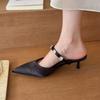 High Quality Satin Heels Women Fashion String Bead Sexy Pointed Slide Sandals Elegant Office Designer Shoes Mule Pumps Slippers