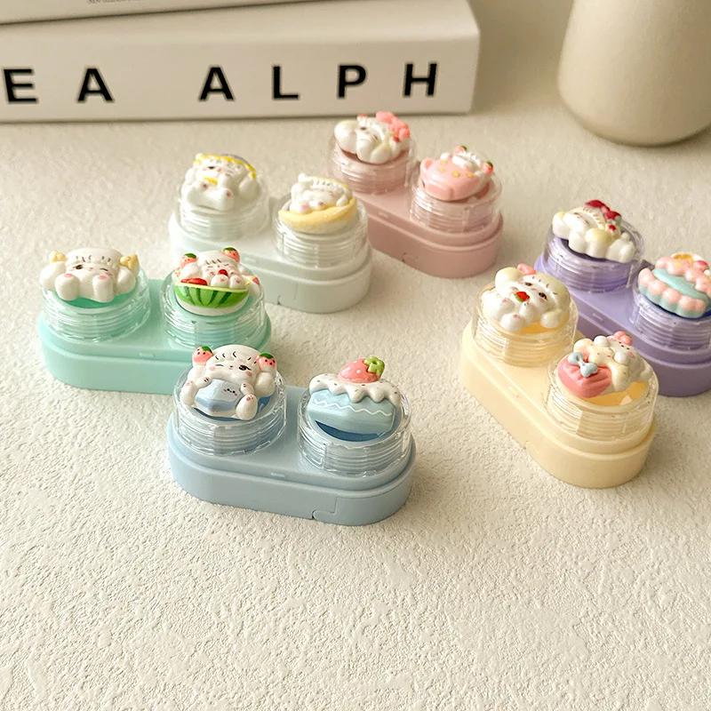 Candy Color Contact Lens Case Cute Cartoon Cat Eye Contacts Beauty Pupil Storage Box with Tweezer Suction Stick Set Girls Gift
