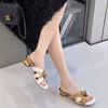New Summer Mid-heeled, High-heeled and Thick-heeled Sandals for Women, One-shoulder Genuine Leather Slippers A60