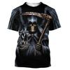 Round Neck 3D Skull Printed T-shirts Fashionable Short Sleeved Men's T-shirts - Soft Medium Stretch Polyester Fabric Summer Relaxed Fit Clothing