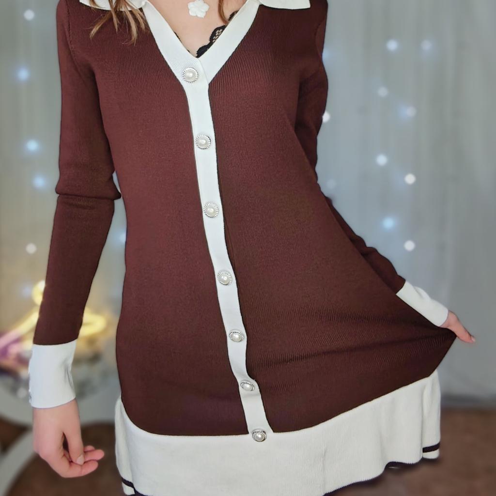 Chic Elegant Long Sleeve Single Breasted Knit Dress Elegant Korean Fashion Vestidos Dress Women Clothing