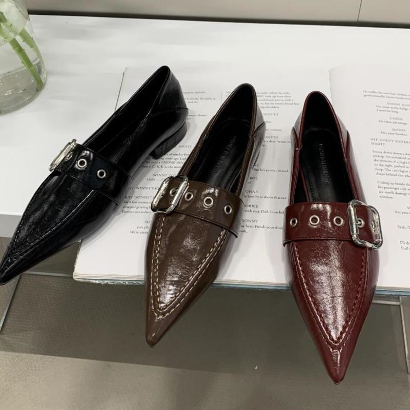 Niche New Light Luxury Pointed Square Metal Buckle with Deep Commute Shallow Middle Heel French Retro Single Shoes