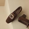 Spring 2025 New Single Shoes Square Head Thick Heel Rhinestone Versatile Commute To Work Occupation Daily Foot Cover Women's Loafers