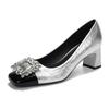 Trendy Brand French Thick Heel Silver High Heels 2025 New Retro Square Head Light Mouth Rhinestone Middle Heel Professional Single Shoes