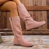 Pile Boots Women's Knight Boots Retro Suede Thick Heel Round Head 2025 Autumn and Winter New Black Wrinkled High Boots