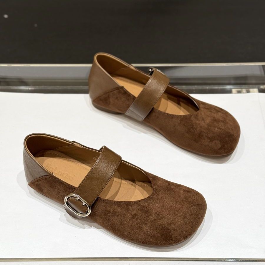 Korean Version of Round Head Suede One-word Strap Single Shoes Women's 2025 New Autumn Versatile Retro Fashionable Mary Jane Small Leather Shoes