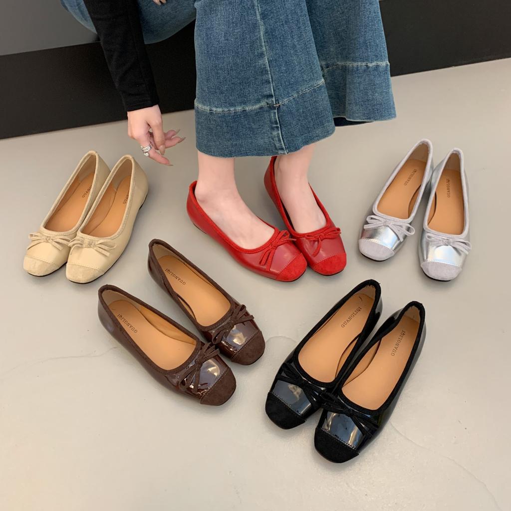 2025 Spring and Summer New Retro Bow Light Mouth Soft Face Women's Shoes Comfortable Soft Sole Ballet Shoes