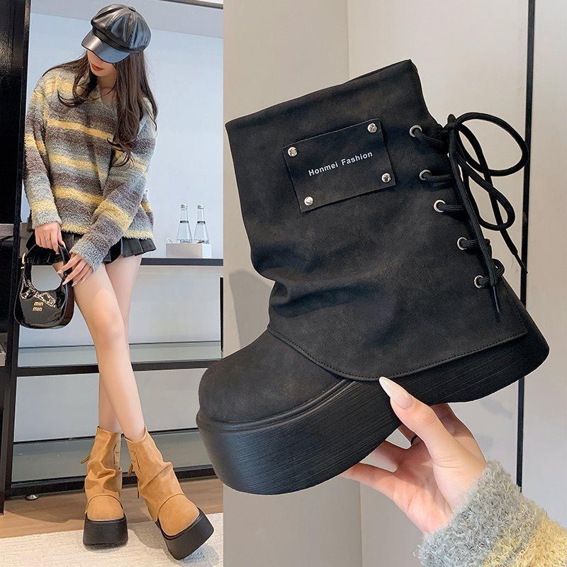 After the Height Increase, the Small Pants Straps, the New Platform Martin Boots, Women's Retro 2025 Big Head and Short Boots, Spice Girls Autumn
