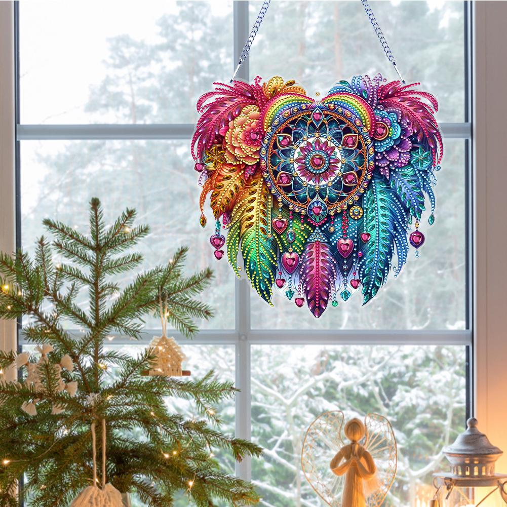 Flower 2D Flat DIY Diamond Painting Set Rhinestone Diamond Art Window Pendants Diamond Art Pendant Wall Decor for Home & Windows