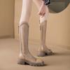 Summer Long Cold Boots for Women 2025 New V-mouth Breathable Mesh Knight Boots Fashion Thick Heel Hollow Mesh Cool Boots